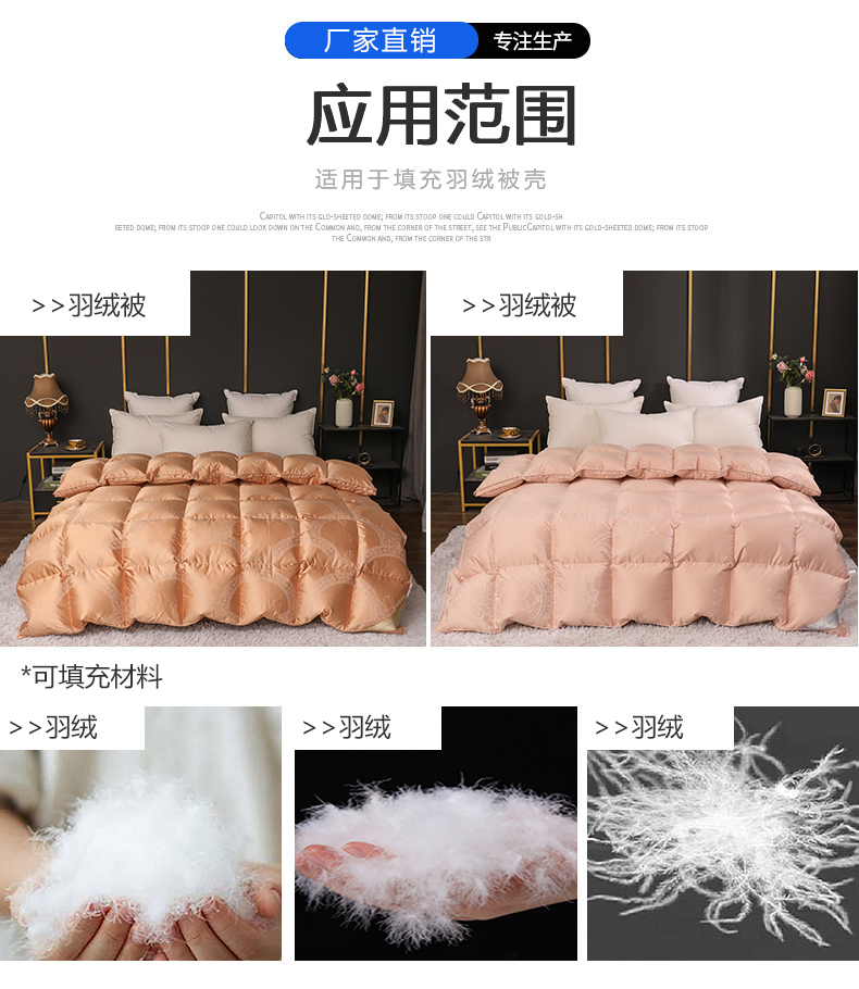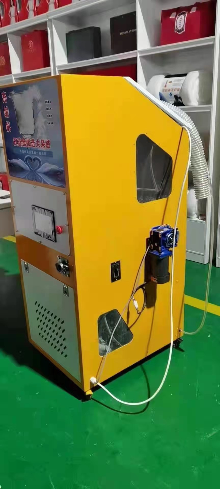 充絨機保持羽絨原油的柔軟性和彈性感。半自動操作,可根據特點調節充絨范圍,誤差小;操作簡單,節省人工成本,充絨在封閉箱內,確保生產現場環境整潔干凈。生產效率高,平均計量時間3-5秒。效率提高2倍以上,可靠性穩定性好。本設備可成功除掉充絨中80%的金屬,該機型100%有效的回收出口中的三絨,確保環境衛生。適合在商店作為羽絨被現充現賣設備。